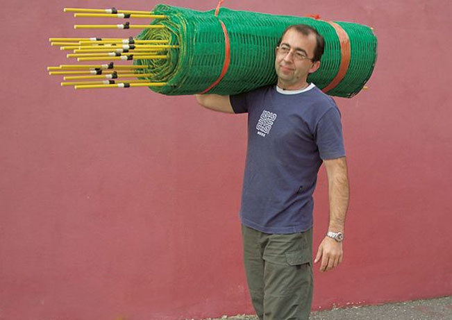 Lieferumfang: Zaun, 18 Stäbe, 18 Abspannseile, 36 Erdanker, 18 Bodenhülsen