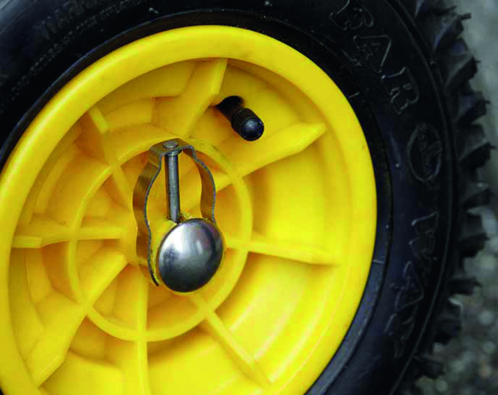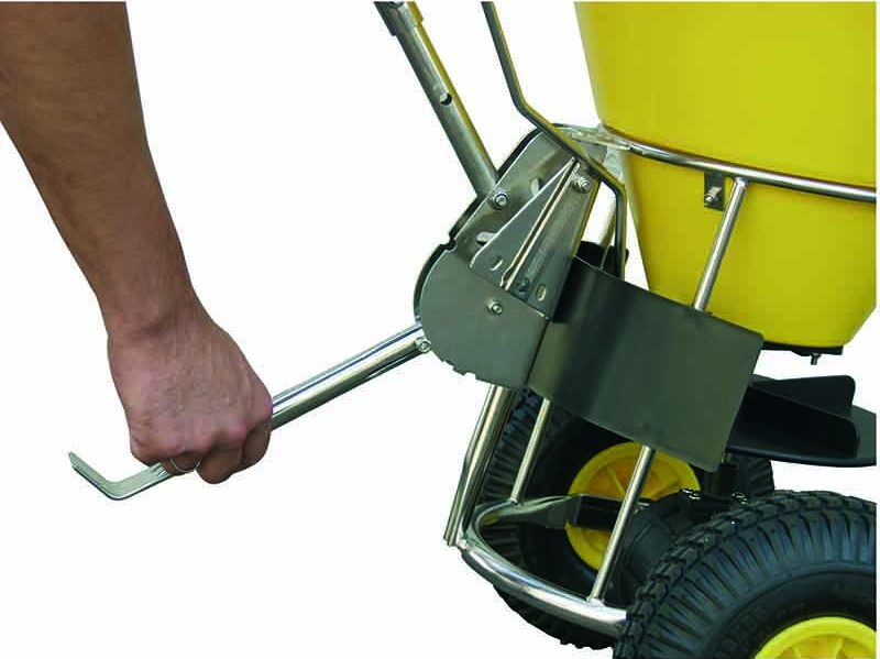 Der Antiverdichtungseinsatz verhindert das Verstopfen des Streuguts. Für eine ergonomische Fahrweise sorgt die Edelstahlschubstange, die in 3 verschiedenen Längen und stufenlos in der Höhe eingestellt werden kann. Die großen luftbefüllten Reifen haben ein grobstolliges Profil und bewegen sich sauber über fast jedes Gelände. Die Räder lassen sich zudem gegen Wegrollen sichern.